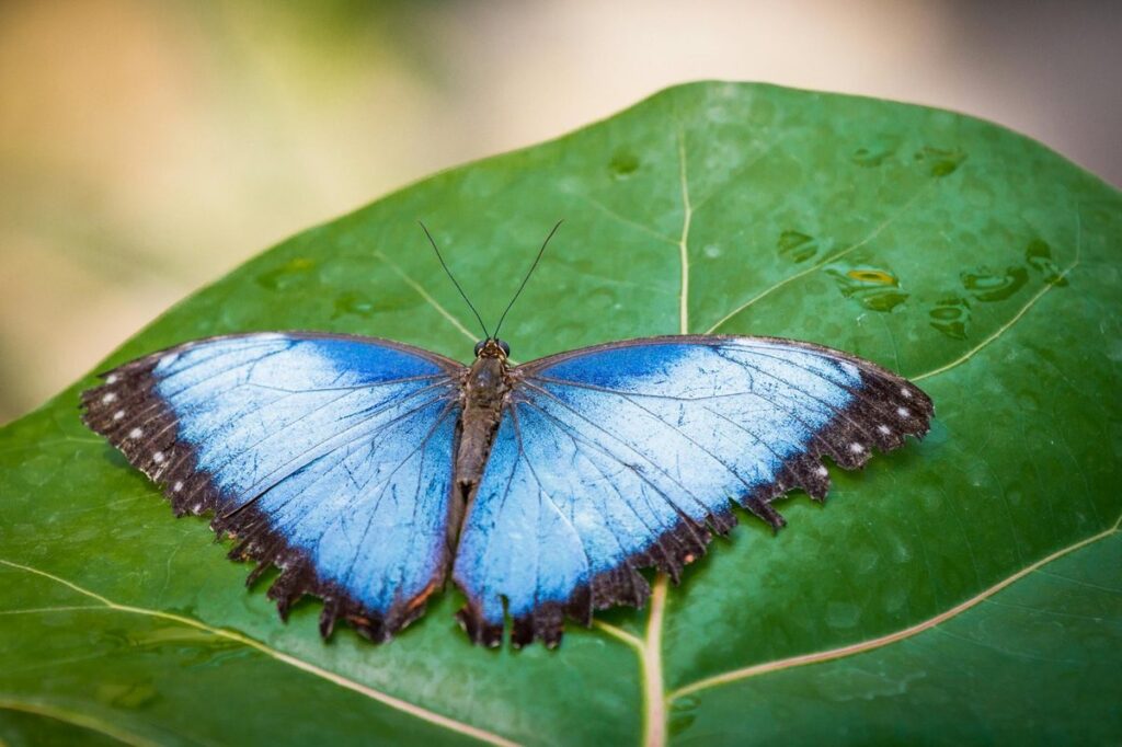 Rano — motylarnia. Tropikalny klimat, żywe motyle z różnych zakątków świata, cisza i zieleń zanim plażowy tłum się rozkręci. Szczegóły wizyty, cennik i wskazówki jak się ubrać znajdziesz w osobnym artykule na blogu — tu skupiamy się na tym, jak tę wizytę wpisać w szerszy plan dnia.